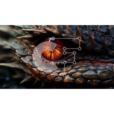 Υπάρχει δυνατότητα προσωποποίησης με δική σας φωτογραφία και προσαρμογής διαστάσεων κατόπιν παραγγελίας. Το συγεκεριμενο Puzzle 10x10 cm – 25 κομμ παρουσιαζει Αυτή η εικόνα είναι μια κοντινή λήψη του ματιού ενός δράκου, που αποκαλύπτει την έντονη και απειλητική παρουσία του. Το μάτι διαθέτει κόκκινη ίριδα και μαύρο σκληρό χιτώνα, με αιχμηρά νύχια και κυνόδοντες ορατά γύρω από τις άκρες. Τα λέπια σ