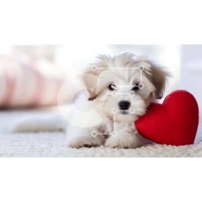 Υπάρχει δυνατότητα προσωποποίησης με δική σας φωτογραφία και προσαρμογής διαστάσεων κατόπιν παραγγελίας. Το συγεκεριμενο Puzzle 10x10 cm – 25 κομμ παρουσιαζει Αυτή η εικόνα παρουσιάζει ένα μικρό, λευκό σκυλί που κρατά μια αξιολάτρευτη κόκκινη καρδιά στο πάτωμα. Αιχμαλωτίζει το πνεύμα της Ημέρας του Αγίου Βαλεντίνου και μπορεί να χρησιμοποιηθεί για να σκορπίσει την αγάπη και την ευτυχία όλο το χρόν