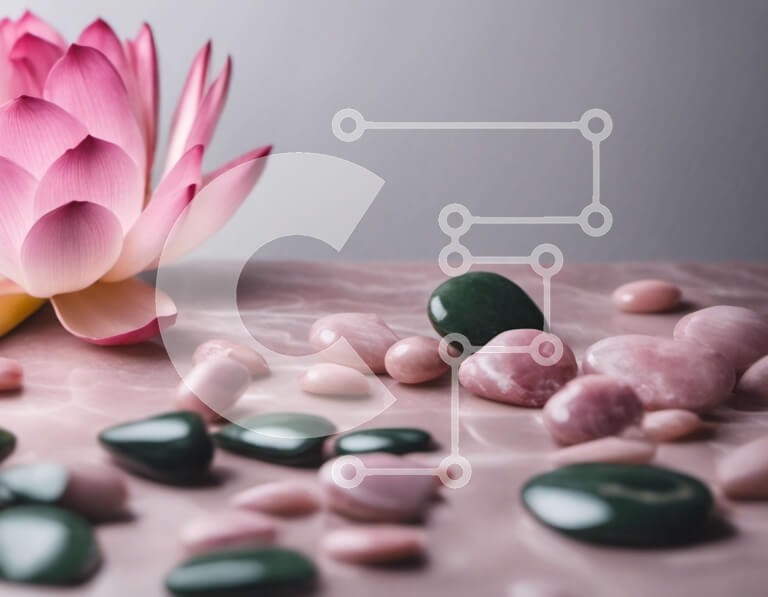 Υπάρχει δυνατότητα προσωποποίησης με δική σας φωτογραφία και προσαρμογής διαστάσεων κατόπιν παραγγελίας. Το συγεκεριμενο puzzle παρουσιαζει Αυτή η εικόνα παρουσιάζει ένα ροζ λουλούδι λωτού τοποθετημένο πάνω από πολλές πέτρες και βότσαλα, δημιουργώντας ένα γαλήνιο και ηρεμιστικό σκηνικό. Το λουλούδι είναι τοποθετημένο στο κέντρο ενός μαρμάρινου τραπεζιού, υποδηλώνοντας τη χρήση του ως μέρος ενός βωμού ή διακοσμητικ
