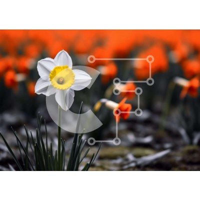 Υπάρχει δυνατότητα προσωποποίησης με δική σας φωτογραφία και προσαρμογής διαστάσεων κατόπιν παραγγελίας. Το συγεκεριμενο puzzle παρουσιαζει Η εικόνα απεικονίζει έναν ενιαίο λευκό και κίτρινο νάρκισσο στη μέση ενός πορτοκαλί πεδίου με λουλούδια. Είναι πιθανό αυτό το λουλούδι να ανθίζει την άνοιξη ή τις αρχές του καλοκαιριού, καθώς φαίνεται να είναι σε πλήρη άνθιση. Μπορεί επίσης να υπάρχουν και άλλα λουλούδια κοντά