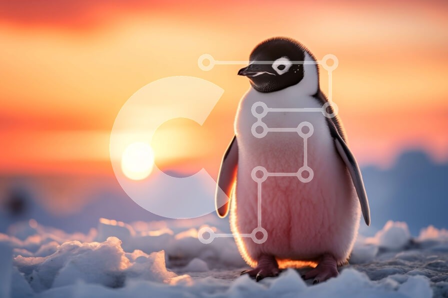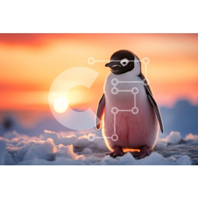 Υπάρχει δυνατότητα προσωποποίησης με δική σας φωτογραφία και προσαρμογής διαστάσεων κατόπιν παραγγελίας. Το συγεκεριμενο puzzle παρουσιαζει Αυτή η εικόνα απαθανατίζει έναν πιγκουίνο που στέκεται πάνω σε μια χιονισμένη επιφάνεια με τον ήλιο να δύει στο βάθος. Ο πιγκουίνος στέκεται στα πίσω πόδια του, τα φτερά ανοιχτά και το ράμφος ανοιχτό σαν να φωνάζει. Τα φτερά του είναι χνουδωτά και λευκά, ενώ το ράμφος και τα π