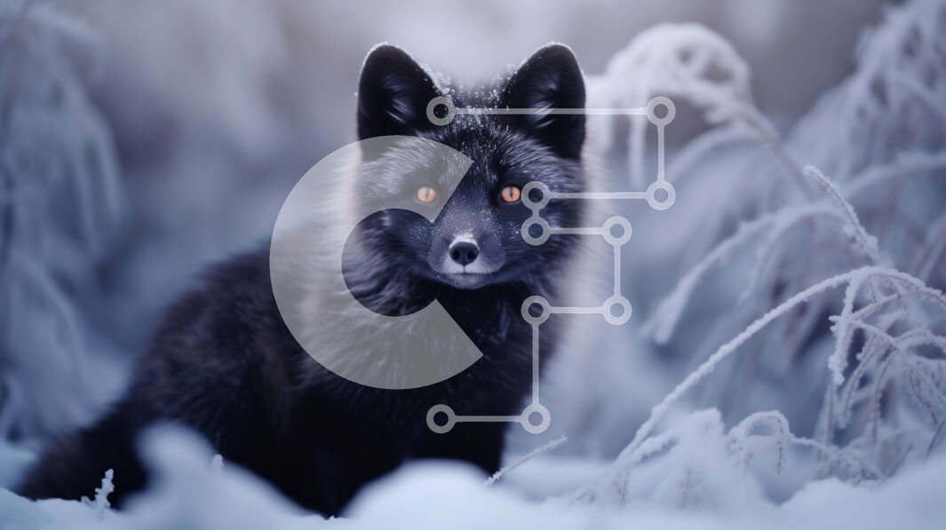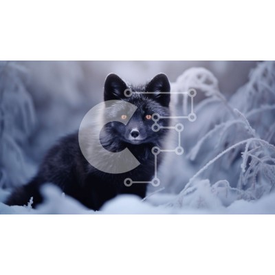 Υπάρχει δυνατότητα προσωποποίησης με δική σας φωτογραφία και προσαρμογής διαστάσεων κατόπιν παραγγελίας. Το συγεκεριμενο Puzzle 10x10 cm – 25 κομμ παρουσιαζει Αυτή η εικόνα παρουσιάζει μια μαύρη αλεπού που κάθεται σε ένα χιονισμένο δάσος. Η αλεπού έχει έντονα κόκκινα μάτια και μια χνουδωτή ουρά και κοιτάζει κατευθείαν την κάμερα με μια περίεργη έκφραση. Το φόντο αποτελείται από χιονισμένα δέντρα κ
