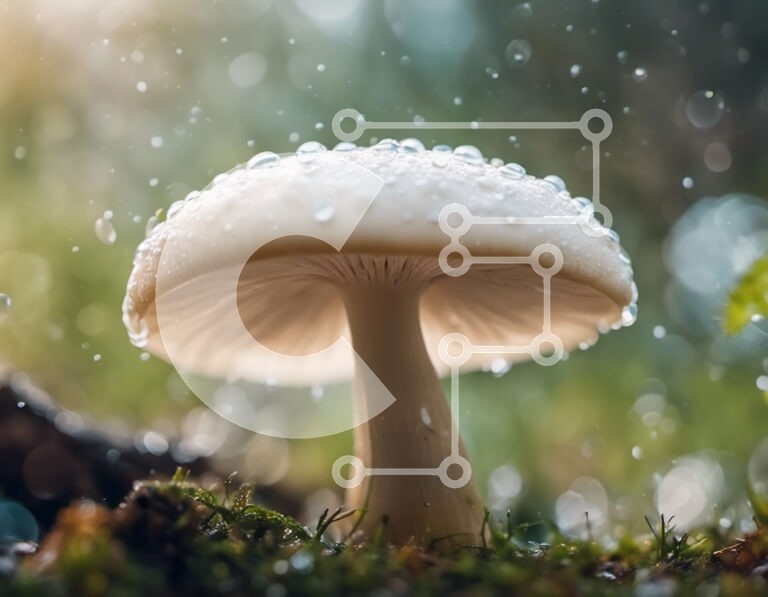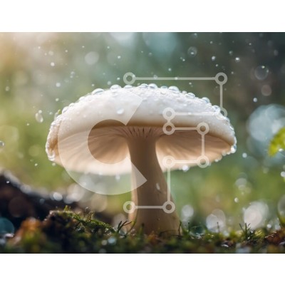 Υπάρχει δυνατότητα προσωποποίησης με δική σας φωτογραφία και προσαρμογής διαστάσεων κατόπιν παραγγελίας. Το συγεκεριμενο puzzle παρουσιαζει Αυτή η εικόνα παρουσιάζει ένα λευκό μανιτάρι με σταγονίδια νερού στην επιφάνειά του, που βρίσκεται στη μέση ενός πράσινου γρασιδιού και περιβάλλεται από βρύα. Ο βροχερός καιρός μπορεί να συνέβαλε στην ανάπτυξή του και είναι πιθανό αυτό το μανιτάρι να έχει μαγειρικές ή φαρμακευ