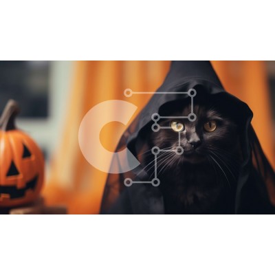 Υπάρχει δυνατότητα προσωποποίησης με δική σας φωτογραφία και προσαρμογής διαστάσεων κατόπιν παραγγελίας. Το συγεκεριμενο Puzzle 10x10 cm – 25 κομμ παρουσιαζει Αυτή η εικόνα παρουσιάζει μια μαύρη γάτα ντυμένη με ρόμπα μάγισσας, που κάθεται δίπλα σε δύο κολοκύθες. Η γάτα κοιτάζει κατευθείαν την κάμερα, μεταφέροντας περιέργεια και ίντριγκα. Είναι μια τέλεια αποτύπωση της εποχής του Halloween και της