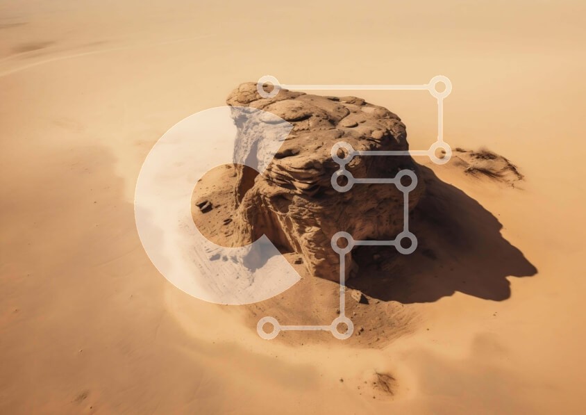 Υπάρχει δυνατότητα προσωποποίησης με δική σας φωτογραφία και προσαρμογής διαστάσεων κατόπιν παραγγελίας. Το συγεκεριμενο puzzle παρουσιαζει Η εικόνα παρουσιάζει μια εναέρια άποψη ενός σχηματισμού βράχου στη μέση της ερήμου. Ο βράχος είναι ορατός από πολλές διαφορετικές γωνίες, υποδηλώνοντας ότι μπορεί να έχει δημιουργηθεί από τη φύση ή από ανθρωπογενείς κατασκευές. Επιπλέον, υπάρχουν διάσπαρτοι άλλοι μικροί βράχοι