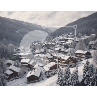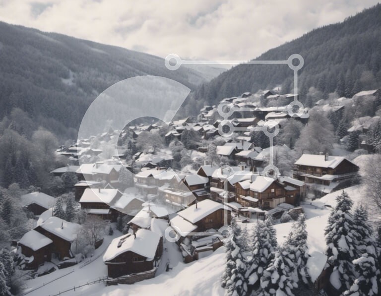 Υπάρχει δυνατότητα προσωποποίησης με δική σας φωτογραφία και προσαρμογής διαστάσεων κατόπιν παραγγελίας. Το συγεκεριμενο puzzle παρουσιαζει Αυτή η εικόνα είναι μια εναέρια άποψη ενός χιονισμένου χωριού στα βουνά. Το χωριό αποτελείται από πολλά ξύλινα σπίτια διάσπαρτα σε όλο το χιονισμένο τοπίο, δημιουργώντας ένα γοητευτικό χειμωνιάτικο σκηνικό. Τα σπίτια είναι φωλιασμένα ανάμεσα στα δέντρα, προσθέτοντας στη γραφικ