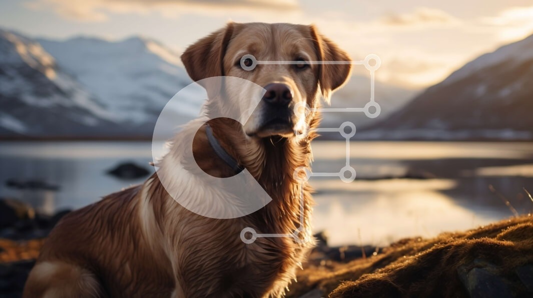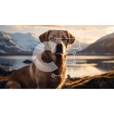 Υπάρχει δυνατότητα προσωποποίησης με δική σας φωτογραφία και προσαρμογής διαστάσεων κατόπιν παραγγελίας. Το συγεκεριμενο Puzzle 10x10 cm – 25 κομμ παρουσιαζει Αυτή η εικόνα παρουσιάζει ένα σκυλί Golden Retriever που κάθεται σε μια βραχώδη ακτή δίπλα σε μια λίμνη, με μαγευτικά βουνά στο βάθος. Ο σκύλος έχει μια ήρεμη έκφραση και κοιτάζει κατευθείαν την κάμερα. Ο ήλιος που δύει πίσω από τα βουνά λού
