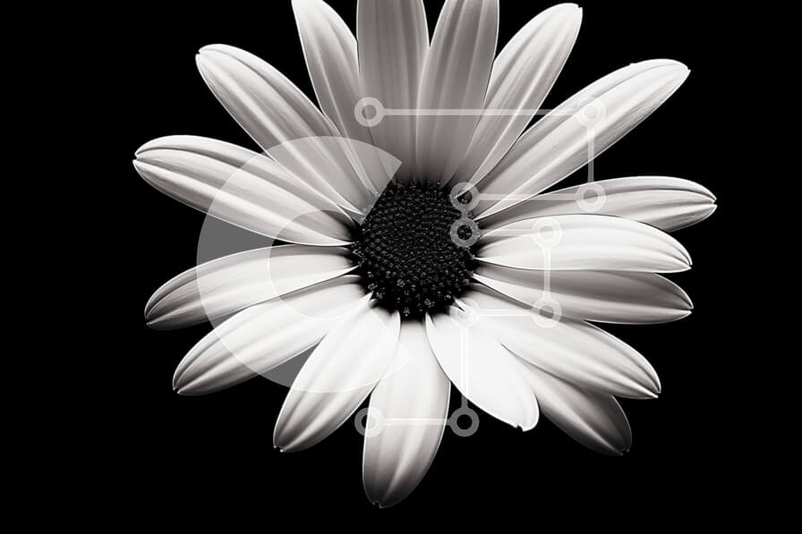 Υπάρχει δυνατότητα προσωποποίησης με δική σας φωτογραφία και προσαρμογής διαστάσεων κατόπιν παραγγελίας. Το συγεκεριμενο puzzle παρουσιαζει Αυτή η εικόνα παρουσιάζει ένα μόνο λευκό λουλούδι μαργαρίτας σε μαύρο και άσπρο. Το λουλούδι τοποθετείται στη μέση του μαύρου φόντου, δημιουργώντας μια εντυπωσιακή αντίθεση. Μπορεί να φανεί από πολλές διαφορετικές γωνίες, καθιστώντας εύκολο τον προσδιορισμό του σχήματος και το