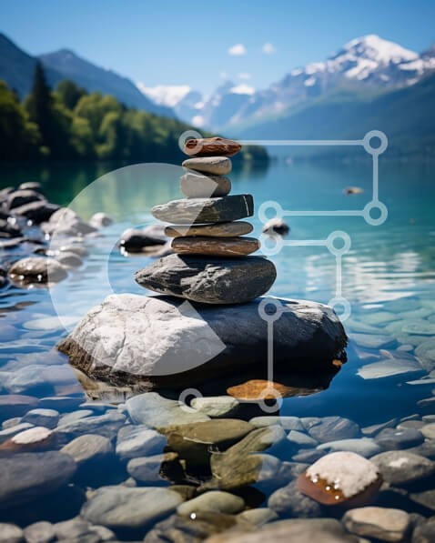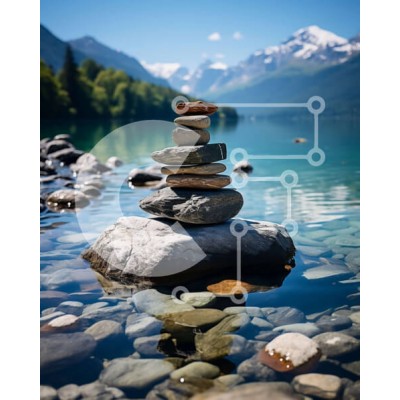 Υπάρχει δυνατότητα προσωποποίησης με δική σας φωτογραφία και προσαρμογής διαστάσεων κατόπιν παραγγελίας. Το συγεκεριμενο puzzle παρουσιαζει Αυτή η εικόνα δείχνει μια στοίβα από βράχους που είναι όμορφα ισορροπημένοι ο ένας πάνω στον άλλο στο κέντρο μιας γαλήνιας λίμνης. Η ήρεμη σκηνή ενισχύεται περαιτέρω από το γραφικό σκηνικό των μαγευτικών βουνών. Η σύνθεση αναδεικνύει την αρμονία μεταξύ των στοιχείων της φύσης
