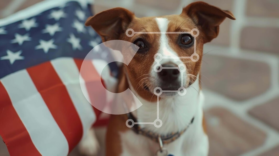 Υπάρχει δυνατότητα προσωποποίησης με δική σας φωτογραφία και προσαρμογής διαστάσεων κατόπιν παραγγελίας. Το συγεκεριμενο Puzzle 10x10 cm – 25 κομμ παρουσιαζει Η εικόνα απεικονίζει έναν καφέ και λευκό σκύλο να στέκεται δίπλα σε μια αμερικανική σημαία. Ο σκύλος κρατά τη σημαία στο στόμα του, κάτι που μπορεί να δείχνει ότι κοιτάζει την κάμερα. Θα μπορούσε επίσης να σημαίνει ότι ο σκύλος θέλει να τον