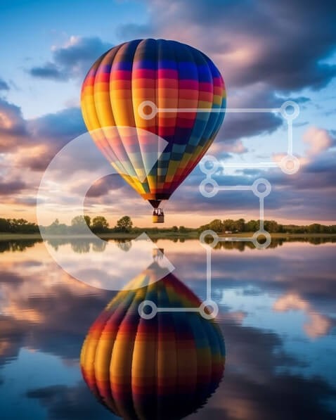 Υπάρχει δυνατότητα προσωποποίησης με δική σας φωτογραφία και προσαρμογής διαστάσεων κατόπιν παραγγελίας. Το συγεκεριμενο puzzle παρουσιαζει Αυτή η εικόνα παρουσιάζει ένα πολύχρωμο μπαλόνι ζεστού αέρα που πετά στα ύψη πάνω από ένα ήρεμο σώμα νερού κατά τη διάρκεια του ηλιοβασιλέματος. Τα χρώματα του ουρανού και του νερού συνδυάζονται άψογα, δημιουργώντας ένα όμορφο σκηνικό για την παιχνιδιάρικη σιλουέτα του μπαλονι