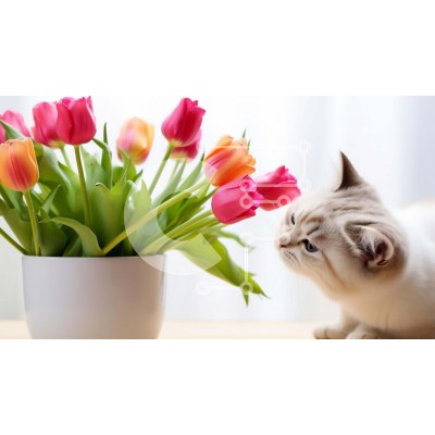 Υπάρχει δυνατότητα προσωποποίησης με δική σας φωτογραφία και προσαρμογής διαστάσεων κατόπιν παραγγελίας. Το συγεκεριμενο Puzzle 10x10 cm – 25 κομμ παρουσιαζει Η εικόνα δείχνει μια λευκή γάτα να μυρίζει τα λουλούδια που είναι τοποθετημένα μέσα σε ένα ανοιχτό, λευκό βάζο. Η γάτα φαίνεται να είναι περίεργη για τη σύνθεση λουλουδιών και μπορεί να ενδιαφέρεται να την εξερευνήσει περαιτέρω. Είναι πιθανό