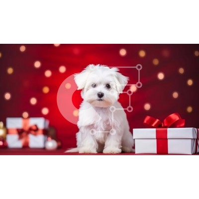 Υπάρχει δυνατότητα προσωποποίησης με δική σας φωτογραφία και προσαρμογής διαστάσεων κατόπιν παραγγελίας. Το συγεκεριμενο Puzzle 10x10 cm – 25 κομμ παρουσιαζει Αυτή η εικόνα παρουσιάζει ένα μικρό λευκό σκυλί που κάθεται μπροστά από πολλά κουτιά δώρων και διακοσμητικά σε κόκκινο φόντο. Ο σκύλος κοιτάζει την κάμερα και φαίνεται να απολαμβάνει την ώρα του με τον ιδιοκτήτη του, ο οποίος στέκεται δίπλα