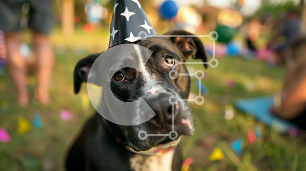 Υπάρχει δυνατότητα προσωποποίησης με δική σας φωτογραφία και προσαρμογής διαστάσεων κατόπιν παραγγελίας. Το συγεκεριμενο Puzzle 10x10 cm – 25 κομμ παρουσιαζει Ένας ασπρόμαυρος σκύλος που φορά ένα ανάποδο καπέλο για πάρτι κάθεται στο γρασίδι με το κεφάλι του γερμένο, κοιτάζοντας την κάμερα. Αρκετοί άνθρωποι βρίσκονται στο παρασκήνιο, που υπαινίσσονται μια υπαίθρια εκδήλωση. Ένα μοναδικό Puzzle 10x