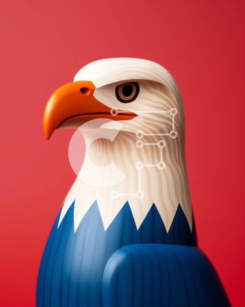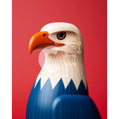Υπάρχει δυνατότητα προσωποποίησης με δική σας φωτογραφία και προσαρμογής διαστάσεων κατόπιν παραγγελίας. Το συγεκεριμενο puzzle παρουσιαζει Η εικόνα δείχνει ένα μεγαλοπρεπές άγαλμα φαλακρού αετού σε κόκκινο, λευκό και μπλε χρώμα που στέκεται σε πορτοκαλί φόντο. Το κεφάλι του πουλιού είναι ελαφρώς γερμένο, υποδηλώνοντας μια αίσθηση κατεύθυνσης ή εστίασης προς το προσκήνιο. Ένα μοναδικό puzzle που συνδυάζει ποιότητ