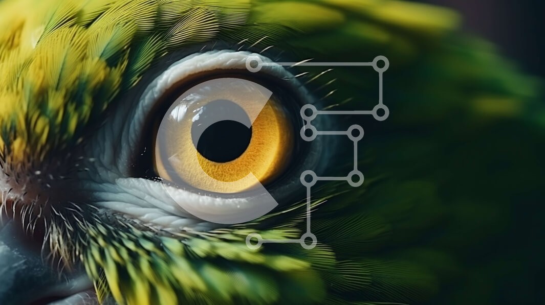 Υπάρχει δυνατότητα προσωποποίησης με δική σας φωτογραφία και προσαρμογής διαστάσεων κατόπιν παραγγελίας. Το συγεκεριμενο Puzzle 10x10 cm – 25 κομμ παρουσιαζει Αυτή η εικόνα παρουσιάζει ένα κοντινό μάτι ενός πουλιού, το οποίο έχει πράσινο χρώμα και έχει μεγάλα κίτρινα μάτια. Το πουλί φαίνεται να κοιτάζει απευθείας την κάμερα, με το κεφάλι του να γέρνει προς τον θεατή. Μπορεί να είναι ένας ιριδίζων