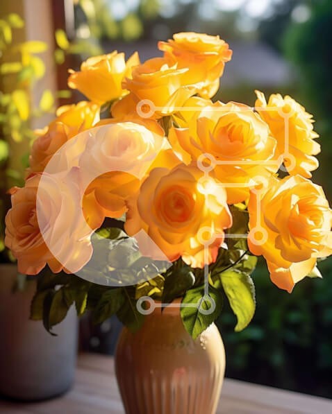 Υπάρχει δυνατότητα προσωποποίησης με δική σας φωτογραφία και προσαρμογής διαστάσεων κατόπιν παραγγελίας. Το συγεκεριμενο puzzle παρουσιαζει Η εικόνα παρουσιάζει ένα βάζο γεμάτο με κίτρινα τριαντάφυλλα, τα οποία είναι τοποθετημένα μπροστά από ένα ανοιχτό παράθυρο. Ένα φυτό σε γλάστρα υπάρχει επίσης στο τραπέζι δίπλα στο βάζο, υποδηλώνοντας ότι μπορεί να είναι μέρος της διάταξης. Συνολικά, η εικόνα αποτυπώνει την ομ