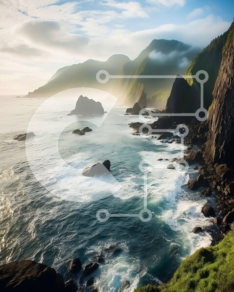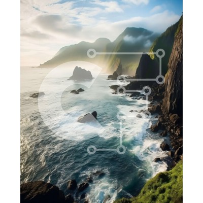 Υπάρχει δυνατότητα προσωποποίησης με δική σας φωτογραφία και προσαρμογής διαστάσεων κατόπιν παραγγελίας. Το συγεκεριμενο puzzle παρουσιαζει Αυτή η εικόνα παρουσιάζει μια τραχιά ακτογραμμή με απότομους βράχους και βραχώδεις σχηματισμούς που εκτείνονται στον ωκεανό. Ο ουρανός είναι συννεφιασμένος και υπάρχει μια ελαφριά ομίχλη στον αέρα. Το νερό είναι βαθύ μπλε και υπάρχουν μερικά μικρά κύματα που τυλίγονται στην ακ