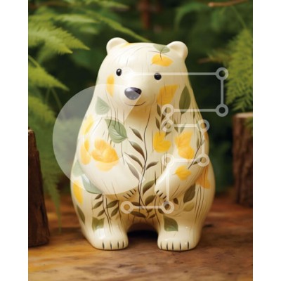 Υπάρχει δυνατότητα προσωποποίησης με δική σας φωτογραφία και προσαρμογής διαστάσεων κατόπιν παραγγελίας. Το συγεκεριμενο puzzle παρουσιαζει Αυτή η εικόνα παρουσιάζει ένα ειδώλιο λευκής αρκούδας στολισμένο με κίτρινα λουλούδια και πράσινα φύλλα. Τοποθετείται σε ένα ημιτελές ξύλινο τραπέζι, που περιβάλλεται από φτέρες και άλλα φυτά. Στο βάθος, πολλά μικρά κούτσουρα υποδηλώνουν ένα φυσικό και ρουστίκ σκηνικό για τη δ