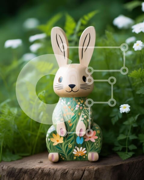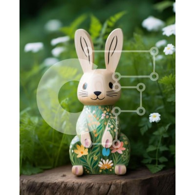 Υπάρχει δυνατότητα προσωποποίησης με δική σας φωτογραφία και προσαρμογής διαστάσεων κατόπιν παραγγελίας. Το συγεκεριμενο puzzle παρουσιαζει Αυτή η εικόνα παρουσιάζει ένα ξύλινο ειδώλιο λαγουδάκι τοποθετημένο σε ένα παλιό κούτσουρο δέντρου ανάμεσα σε πράσινο και λουλούδια. Το φυσικό σκηνικό δημιουργεί ένα γαλήνιο περιβάλλον και η παρουσία των λευκών μαργαριτών προσθέτει στη γοητεία της σκηνής. Ένα μοναδικό puzzle