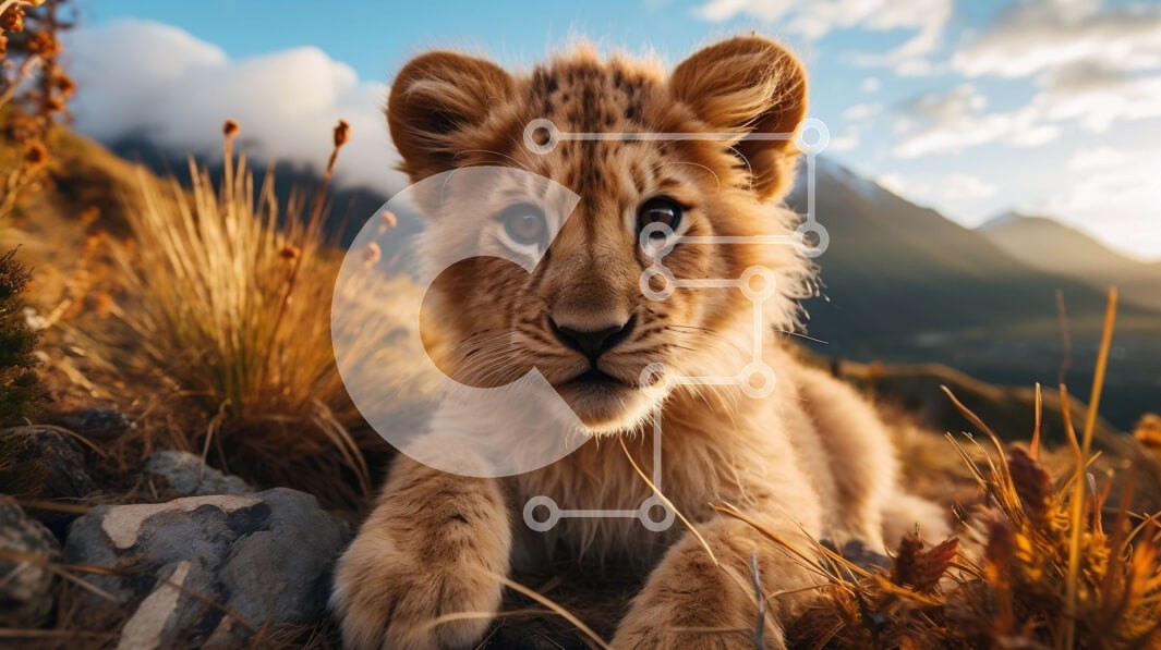 Υπάρχει δυνατότητα προσωποποίησης με δική σας φωτογραφία και προσαρμογής διαστάσεων κατόπιν παραγγελίας. Το συγεκεριμενο Puzzle 10x10 cm – 25 κομμ παρουσιαζει Αυτή η εικόνα δείχνει ένα λιοντάρι που κάθεται σε ένα βραχώδες έδαφος, με φόντο τα βουνά. Το μικρό κοιτάζει απευθείας την κάμερα, δείχνοντας την περίεργη φύση του. Η γούνα του είναι χοντρή και αφράτη και τα πόδια του λερωμένα από το περπάτημ