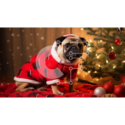 Υπάρχει δυνατότητα προσωποποίησης με δική σας φωτογραφία και προσαρμογής διαστάσεων κατόπιν παραγγελίας. Το συγεκεριμενο Puzzle 10x10 cm – 25 κομμ παρουσιαζει Αυτή η εικόνα παρουσιάζει ένα σκυλί πατημασιά ντυμένο με εορταστική κόκκινη χριστουγεννιάτικη στολή με λευκά στολίδια, που κάθεται σε μια κόκκινη κουβέρτα κάτω από ένα στολισμένο χριστουγεννιάτικο δέντρο. Ο σκύλος έχει μια περίεργη έκφραση κ