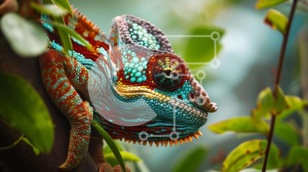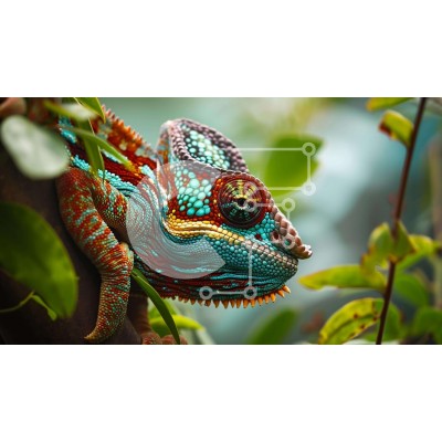 Υπάρχει δυνατότητα προσωποποίησης με δική σας φωτογραφία και προσαρμογής διαστάσεων κατόπιν παραγγελίας. Το συγεκεριμενο Puzzle 10x10 cm – 25 κομμ παρουσιαζει Αυτή η εικόνα παρουσιάζει έναν πολύχρωμο χαμαιλέοντα που στηρίζεται σε ένα κλαδί ενός κατάφυτου δέντρου. Το φωτεινό και ζωντανό σώμα του υποδηλώνει τη δραστήρια φύση του κατά τη διάρκεια της ημέρας. Ο χαμαιλέοντας περιβάλλεται από πράσινα φύ