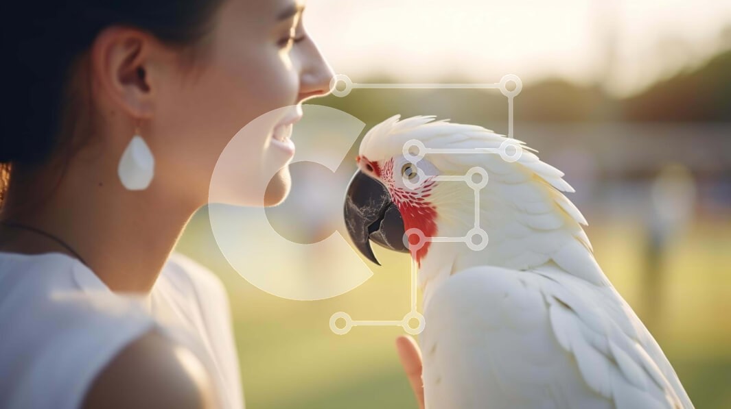 Υπάρχει δυνατότητα προσωποποίησης με δική σας φωτογραφία και προσαρμογής διαστάσεων κατόπιν παραγγελίας. Το συγεκεριμενο Puzzle 10x10 cm – 25 κομμ παρουσιαζει Η εικόνα απεικονίζει μια γυναίκα που κρατά έναν εξωτικό λευκό παπαγάλο, ο οποίος είναι σκαρφαλωμένος στο κεφάλι της. Η γυναίκα χαμογελά και φαίνεται να αλληλεπιδρά με το πουλί με φιλικό τρόπο. Ένα μοναδικό Puzzle 10x10 cm – 25 κομμπου συνδυ