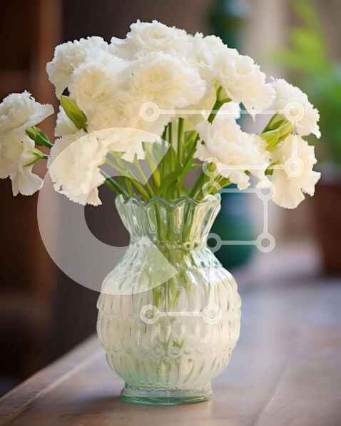 Υπάρχει δυνατότητα προσωποποίησης με δική σας φωτογραφία και προσαρμογής διαστάσεων κατόπιν παραγγελίας. Το συγεκεριμενο puzzle παρουσιαζει Η εικόνα δείχνει ένα διαφανές γυάλινο βάζο που περιέχει φρέσκα λευκά γαρίφαλα, τοποθετημένο σε ένα ξύλινο τραπέζι. Τα άνθη φαίνεται να είναι καλά συντηρημένα και σε καλή κατάσταση, υποδηλώνοντας πρόσφατο πότισμα και φροντίδα. Η μακροζωία των λουλουδιών είναι αβέβαιη, αλλά είνα