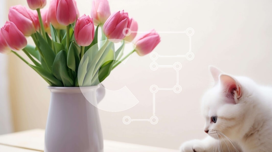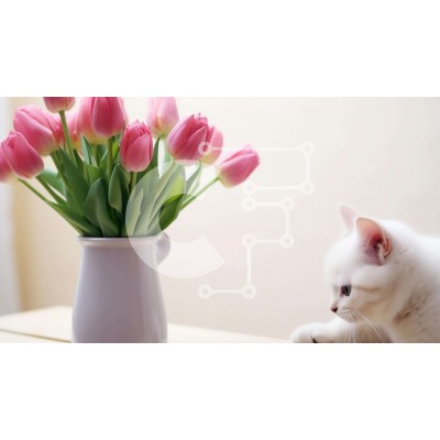 Υπάρχει δυνατότητα προσωποποίησης με δική σας φωτογραφία και προσαρμογής διαστάσεων κατόπιν παραγγελίας. Το συγεκεριμενο Puzzle 10x10 cm – 25 κομμ παρουσιαζει Η εικόνα δείχνει μια λευκή γάτα να κάθεται δίπλα σε ένα άδειο βάζο με ροζ τουλίπες. Η γάτα κοιτάζει τα λουλούδια, τα οποία φαίνεται να είναι φρέσκα και ανθισμένα. Μπορεί να είναι περίεργο ή παιχνιδιάρικο, ανάλογα με το πώς αλληλεπιδρά με το