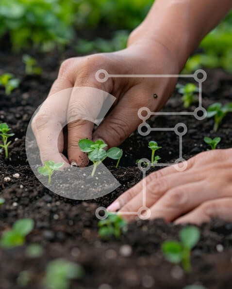 Υπάρχει δυνατότητα προσωποποίησης με δική σας φωτογραφία και προσαρμογής διαστάσεων κατόπιν παραγγελίας. Το συγεκεριμενο puzzle παρουσιαζει Η εικόνα δείχνει τα χέρια ενός ατόμου να μαζεύουν μικρά πράσινα φυτά από το έδαφος, υποδηλώνοντας πιθανώς δραστηριότητες κηπουρικής. Η σκηνή υποδηλώνει φροντίδα και προσοχή στα φυτά σε ένα περιβάλλον κήπου. Ένα μοναδικό puzzle που συνδυάζει ποιότητα, αισθητική και εμπειρία.