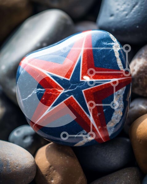 Υπάρχει δυνατότητα προσωποποίησης με δική σας φωτογραφία και προσαρμογής διαστάσεων κατόπιν παραγγελίας. Το συγεκεριμενο puzzle παρουσιαζει Η εικόνα παρουσιάζει έναν κόκκινο, μπλε και λευκό βράχο σε σχήμα αστεριού τοποθετημένο πάνω από άλλους βράχους σε ένα φυσικό περιβάλλον. Ο βράχος σε σχήμα αστεριού ξεχωρίζει ως κομβικό σημείο στη σκηνή, προσθέτοντας ένα μοναδικό και πολύχρωμο στοιχείο στο τοπίο. Ένα μοναδικό