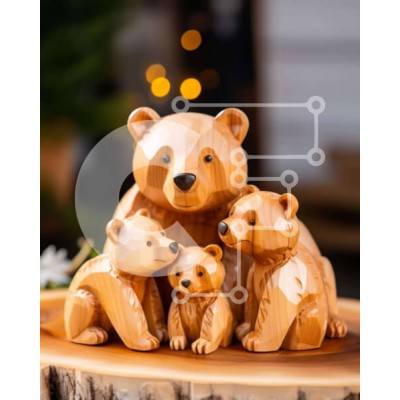Υπάρχει δυνατότητα προσωποποίησης με δική σας φωτογραφία και προσαρμογής διαστάσεων κατόπιν παραγγελίας. Το συγεκεριμενο puzzle παρουσιαζει Η εικόνα παρουσιάζει μια ομάδα ξύλινων ειδωλίων αρκούδας που κάθονται πάνω από ένα παλιό κούτσουρο δέντρου. Υπάρχουν τρία αρκουδάκια, το ένα από τα οποία είναι μικρότερο από τα άλλα δύο. Φαίνονται να απολαμβάνουν το χρόνο τους μαζί, καθώς κοιτάζουν ο ένας τον άλλον και αλληλεπ
