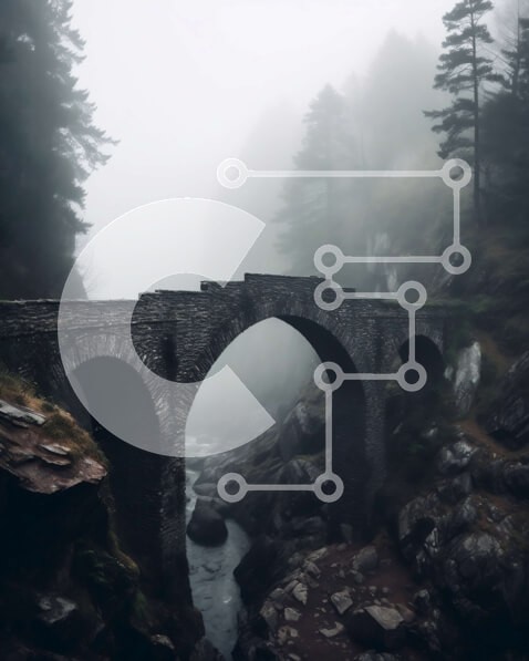 Υπάρχει δυνατότητα προσωποποίησης με δική σας φωτογραφία και προσαρμογής διαστάσεων κατόπιν παραγγελίας. Το συγεκεριμενο puzzle παρουσιαζει Αυτή η εικόνα απαθανατίζει μια πέτρινη γέφυρα που εκτείνεται σε ένα ομιχλώδες φαράγγι στα βουνά. Το γεφύρι είναι φτιαγμένο από ακατέργαστη πέτρα με πολλές καμάρες, ενώ τα δέντρα στις πλευρές του φαραγγιού είναι στριμμένα και ροκανισμένα. Η ομίχλη δημιουργεί μια απόκοσμη και μυ