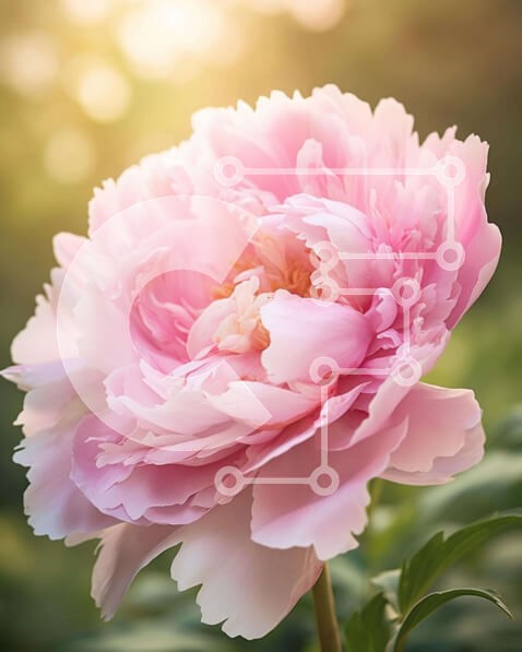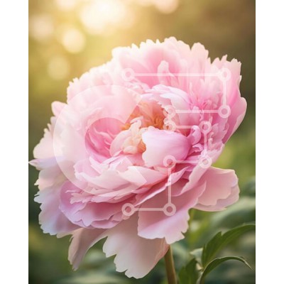 Υπάρχει δυνατότητα προσωποποίησης με δική σας φωτογραφία και προσαρμογής διαστάσεων κατόπιν παραγγελίας. Το συγεκεριμενο puzzle παρουσιαζει Η εικόνα δείχνει ένα ζωντανό ροζ λουλούδι παιώνιας σε πλήρη άνθηση που περιβάλλεται από καταπράσινο τοπίο. Το λουλούδι φαίνεται να ανθίζει στο φυσικό του περιβάλλον, υποδηλώνοντας πιθανώς ότι είναι μονοετές ή πολυετές φυτό. Φωτιζόμενο από το έντονο ηλιακό φως που φιλτράρει μέσ