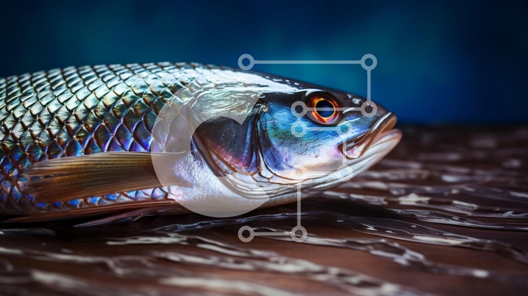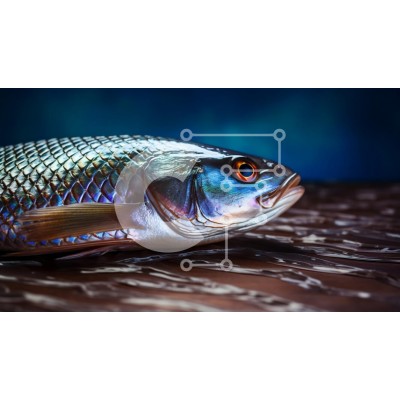 Υπάρχει δυνατότητα προσωποποίησης με δική σας φωτογραφία και προσαρμογής διαστάσεων κατόπιν παραγγελίας. Το συγεκεριμενο Puzzle 10x10 cm – 25 κομμ παρουσιαζει Αυτή η εικόνα παρουσιάζει ένα κοντινό πλάνο ενός ζωντανού ψαριού που στηρίζεται σε μια ανάγλυφη επιφάνεια. Τα λέπια του ψαριού λαμπυρίζουν με ιριδίζοντα χρώματα, αντανακλώντας ένα μείγμα από μπλε, πράσινα και ασημί, και τα μεγάλα, εκφραστικά