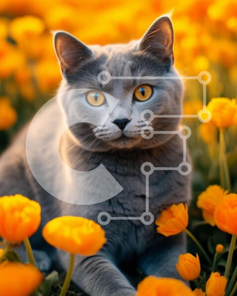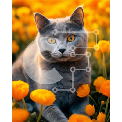 Υπάρχει δυνατότητα προσωποποίησης με δική σας φωτογραφία και προσαρμογής διαστάσεων κατόπιν παραγγελίας. Το συγεκεριμενο puzzle παρουσιαζει Η εικόνα παρουσιάζει μια γκρίζα γάτα που κάθεται στη μέση ενός πορτοκαλί λουλουδιού. Τα μάτια της γάτας είναι φωτεινά και ορατά, υποδηλώνοντας ότι απολαμβάνει το περιβάλλον της. Μπορεί να είναι περίεργο για τα λουλούδια που το περιβάλλουν ή μπορεί απλώς να τα κοιτάζει με περιέ