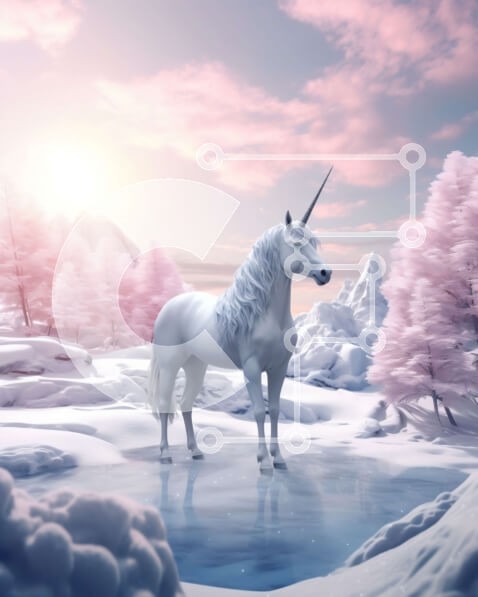 Υπάρχει δυνατότητα προσωποποίησης με δική σας φωτογραφία και προσαρμογής διαστάσεων κατόπιν παραγγελίας. Το συγεκεριμενο puzzle παρουσιαζει Αυτή η εικόνα είναι ενός λευκού μονόκερου που στέκεται σε μια χιονισμένη πεδιάδα που περιβάλλεται από ροζ δέντρα και έναν γαλάζιο ουρανό. Ο μονόκερος έχει μακριά χαίτη και ουρά και το κέρατό του λάμπει. Ο ήλιος λάμπει από τη δεξιά πλευρά της εικόνας, ρίχνοντας ένα ζεστό φως στ