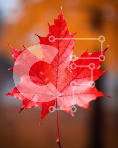 Υπάρχει δυνατότητα προσωποποίησης με δική σας φωτογραφία και προσαρμογής διαστάσεων κατόπιν παραγγελίας. Το συγεκεριμενο puzzle παρουσιαζει Αυτή η εικόνα παρουσιάζει μια κοντινή λήψη ενός κόκκινου φύλλου σφενδάμου σε ένα κλαδί δέντρου. Το φύλλο είναι σε ευκρινή εστίαση, αναδεικνύοντας το ζωηρό κόκκινο χρώμα και τις περίπλοκες λεπτομέρειες. Το φόντο είναι σκόπιμα θολό, δημιουργώντας μια απαλή και ονειρική ατμόσφαιρ