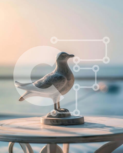 Υπάρχει δυνατότητα προσωποποίησης με δική σας φωτογραφία και προσαρμογής διαστάσεων κατόπιν παραγγελίας. Το συγεκεριμενο puzzle παρουσιαζει Η εικόνα παρουσιάζει ένα άγαλμα γλάρου που κάθεται πάνω από ένα υπαίθριο τραπέζι κοντά στον ωκεανό. Υπάρχουν πολλά σκάφη ορατά στο βάθος, που υποδηλώνουν κίνηση και ταξίδι. Η σκηνή αποτυπώνει μια γαλήνια παραθαλάσσια ατμόσφαιρα με ένα διακοσμητικό γλυπτό πουλιών. Ένα μοναδικό
