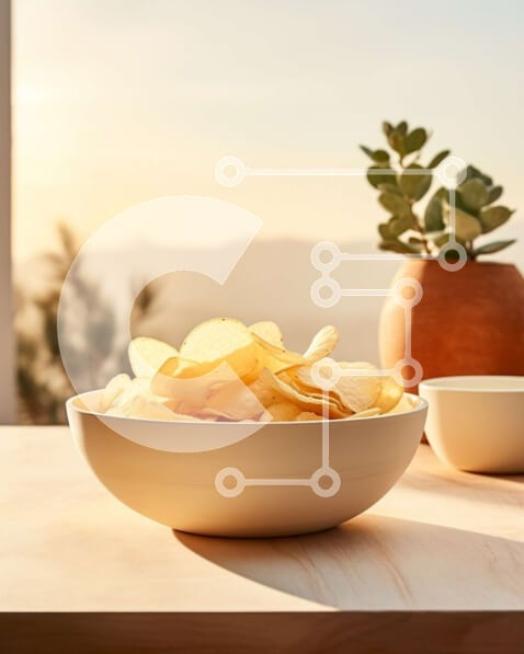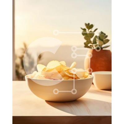 Υπάρχει δυνατότητα προσωποποίησης με δική σας φωτογραφία και προσαρμογής διαστάσεων κατόπιν παραγγελίας. Το συγεκεριμενο puzzle παρουσιαζει Αυτή η εικόνα παρουσιάζει ένα μπολ με πατατάκια τοποθετημένα σε ένα τραπέζι, με εκπληκτική θέα μιας οροσειράς στο βάθος. Τα πατατάκια είναι χρυσαφένια και τραγανά, προσκαλώντας σας να αφεθείτε στην αλμυρή τους γεύση. Τα βουνά προσφέρουν ένα γραφικό σκηνικό, που αναδεικνύει το