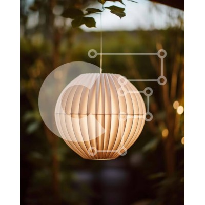 Υπάρχει δυνατότητα προσωποποίησης με δική σας φωτογραφία και προσαρμογής διαστάσεων κατόπιν παραγγελίας. Το συγεκεριμενο puzzle παρουσιαζει Η εικόνα παρουσιάζει ένα φωτιστικό που κρέμεται από τα κλαδιά του δέντρου. Είναι κατασκευασμένο από λευκό χαρτί και φαίνεται να αιωρείται στον αέρα. Υπάρχουν πολλά φύλλα που περιβάλλουν τη λάμπα, υποδηλώνοντας ότι μπορεί να είναι μέρος ενός εξωτερικού χώρου. Ένα μοναδικό puzz