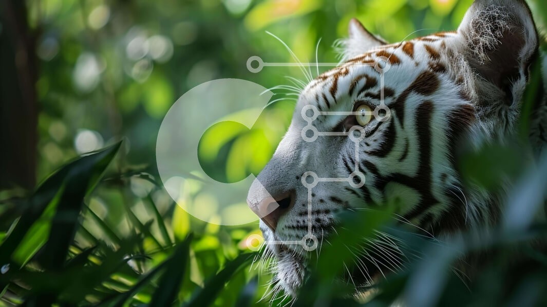 Υπάρχει δυνατότητα προσωποποίησης με δική σας φωτογραφία και προσαρμογής διαστάσεων κατόπιν παραγγελίας. Το συγεκεριμενο Puzzle 10x10 cm – 25 κομμ παρουσιαζει Αυτή η εικόνα δείχνει μια λευκή τίγρη σε ένα δάσος, κρυμμένη ανάμεσα σε ψηλά χόρτα και φυτά. Η τίγρη φαίνεται να κοιτάζει κάτι με ένα περίεργο βλέμμα, υπονοώντας το ενδιαφέρον της να εξερευνήσει το περιβάλλον. Τα καταπράσινα φύλλα στο έδαφος