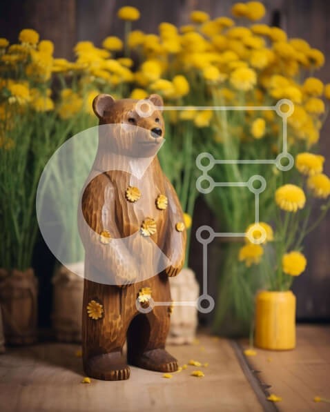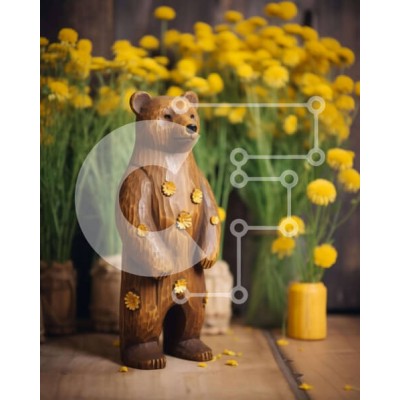 Υπάρχει δυνατότητα προσωποποίησης με δική σας φωτογραφία και προσαρμογής διαστάσεων κατόπιν παραγγελίας. Το συγεκεριμενο puzzle παρουσιαζει Αυτή η εικόνα παρουσιάζει ένα ξύλινο άγαλμα αρκούδας που στέκεται ανάμεσα σε μια διάσπαρτη κίτρινη μαργαρίτα, με βάζα και βάζα κοντά. Οι φωτεινές και χαρούμενες κίτρινες μαργαρίτες προσθέτουν ένα ποπ χρώμα στη σκηνή, δημιουργώντας μια γοητευτική και ιδιότροπη εμφάνιση. Ένα μο