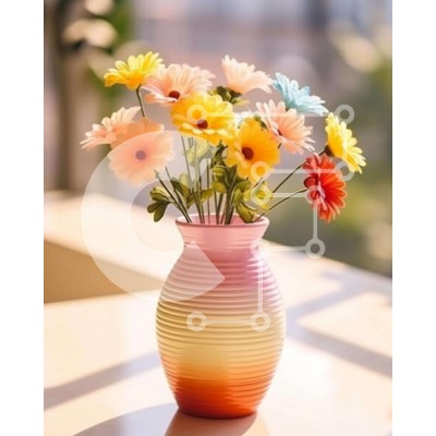 Υπάρχει δυνατότητα προσωποποίησης με δική σας φωτογραφία και προσαρμογής διαστάσεων κατόπιν παραγγελίας. Το συγεκεριμενο puzzle παρουσιαζει Η εικόνα δείχνει ένα ροζ βάζο γεμάτο με μια ποικιλία από πολύχρωμα λουλούδια τοποθετημένα σε ένα τραπέζι μπροστά από ένα παράθυρο. Τα λουλούδια περιλαμβάνουν μαργαρίτες, ηλίανθους και γαρύφαλλα, όλα φαίνονται φρέσκα και ζωντανά. Η σκηνή υποδηλώνει προσεκτική φροντίδα και πρόσφ