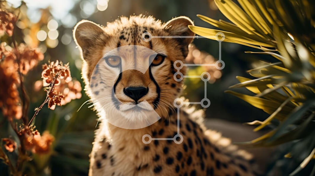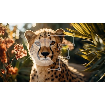 Υπάρχει δυνατότητα προσωποποίησης με δική σας φωτογραφία και προσαρμογής διαστάσεων κατόπιν παραγγελίας. Το συγεκεριμενο Puzzle 10x10 cm – 25 κομμ παρουσιαζει Αυτή η εικόνα παρουσιάζει ένα τσιτάχ που κάθεται σε μια χορταριασμένη περιοχή που περιβάλλεται από φυτά και λουλούδια. Το τσιτάχ κοιτάζει κατευθείαν την κάμερα, δείχνοντας τα μεγάλα, λαμπερά μάτια του. Η γούνα του είναι ένα όμορφο χρυσοκαφέ