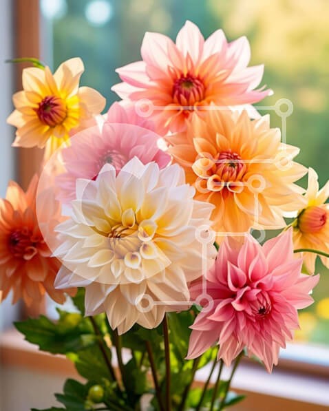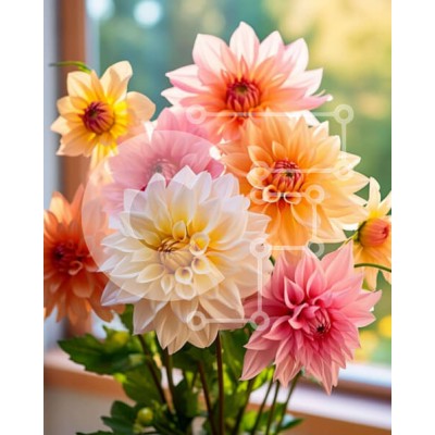 Υπάρχει δυνατότητα προσωποποίησης με δική σας φωτογραφία και προσαρμογής διαστάσεων κατόπιν παραγγελίας. Το συγεκεριμενο puzzle παρουσιαζει Η εικόνα παρουσιάζει ένα βάζο γεμάτο με πολύχρωμα λουλούδια σε διάφορες αποχρώσεις του ροζ, πορτοκαλί, κίτρινου και λευκού. Αυτά τα λουλούδια τοποθετούνται μπροστά από το παράθυρο, όπου μπορούν να δουν εύκολα οι περαστικοί. Φαίνονται να είναι φρέσκα και ζωντανά, γεγονός που πρ
