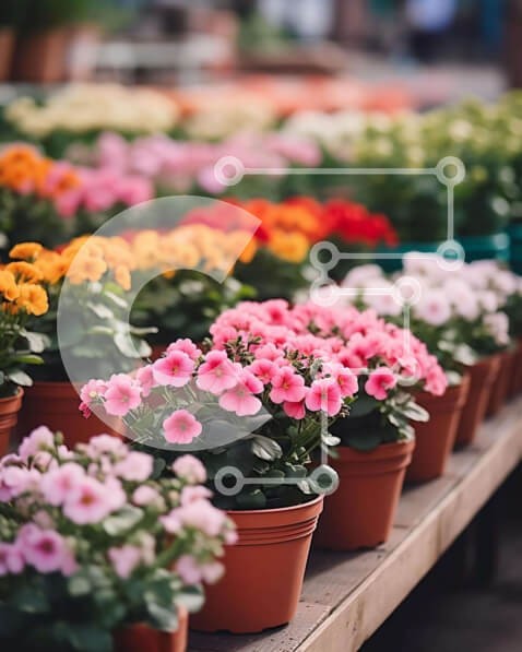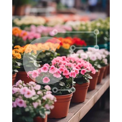 Υπάρχει δυνατότητα προσωποποίησης με δική σας φωτογραφία και προσαρμογής διαστάσεων κατόπιν παραγγελίας. Το συγεκεριμενο puzzle παρουσιαζει Αυτή η εικόνα παρουσιάζει μια ποικιλία από λουλούδια και φυτά σε γλάστρες σε μια υπαίθρια αγορά λουλουδιών. Η ζωντανή οθόνη διαθέτει γλάστρες διαφόρων μεγεθών και χρωμάτων, με μερικά να περιέχουν φρέσκα λουλούδια ενώ άλλα είναι άδεια. Επιπλέον, εκτίθενται φυτά όπως ντομάτες, α
