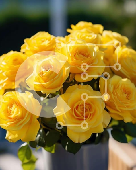 Υπάρχει δυνατότητα προσωποποίησης με δική σας φωτογραφία και προσαρμογής διαστάσεων κατόπιν παραγγελίας. Το συγεκεριμενο puzzle παρουσιαζει Η εικόνα παρουσιάζει ένα βάζο γεμάτο με κίτρινα τριαντάφυλλα, τα οποία είναι τοποθετημένα στο κέντρο του τραπεζιού. Υπάρχουν αρκετοί διαφορετικοί τύποι λουλουδιών τριαντάφυλλου που υπάρχουν σε αυτή τη διάταξη, συμπεριλαμβανομένων των κόκκινων, λευκών και κίτρινων ποικιλιών. Κά