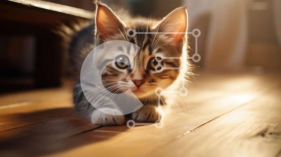Υπάρχει δυνατότητα προσωποποίησης με δική σας φωτογραφία και προσαρμογής διαστάσεων κατόπιν παραγγελίας. Το συγεκεριμενο Puzzle 10x10 cm – 25 κομμ παρουσιαζει Αυτή η εικόνα παρουσιάζει ένα αξιολάτρευτο γατάκι που περπατά σε ένα ξύλινο πάτωμα. Το γατάκι κοιτάζει κατευθείαν την κάμερα με τα μεγάλα, περίεργα μάτια του. Ο φωτισμός στην εικόνα είναι ζεστός και φυσικός, δημιουργώντας μια απαλή λάμψη στη
